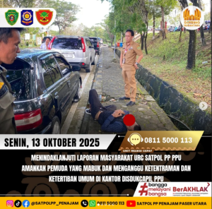 Dengan tindakan cepat tersebut, Satpol PP bersama Dinas Sosial berhasil memastikan kondisi pemuda tersebut aman dan tertangani dengan baik. Ke depan, Satpol PP PPU akan terus berkomitmen menjaga ketentraman dan ketertiban umum melalui penanganan responsif terhadap laporan masyarakat.